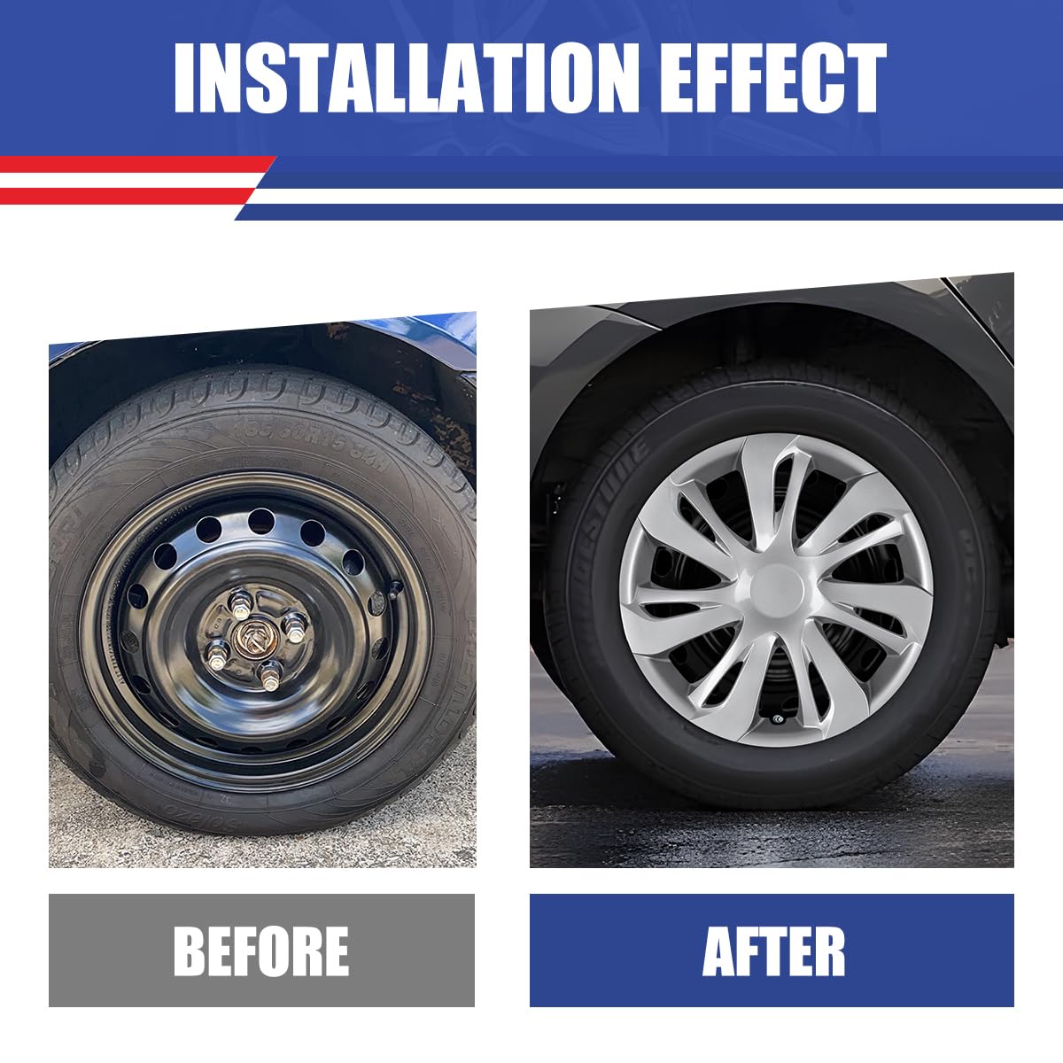 - â ăEasy To Installă: With a quick and easy snap-on replacement, our hubcaps are easy to install. Just place them on the tire and snap them into place, Locate the curve on the retention ring and match to the tire air valve to install.