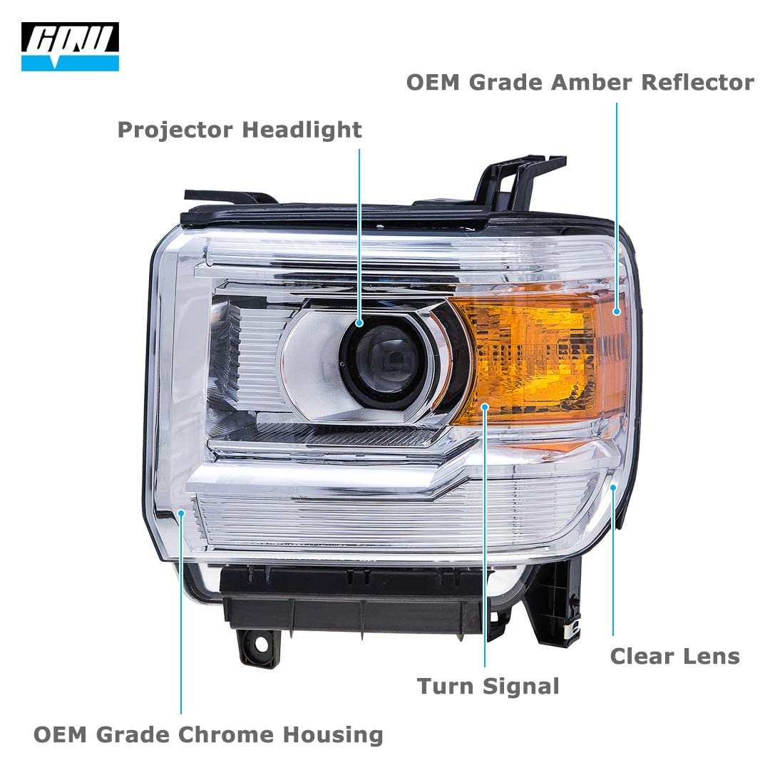 CPW Compatible with [2014-2015 GMC SIERRA 1500] [2015-2019 GMC SIERRA 2500/3500] Aftermarket Replacement Headlights Headlamps Set