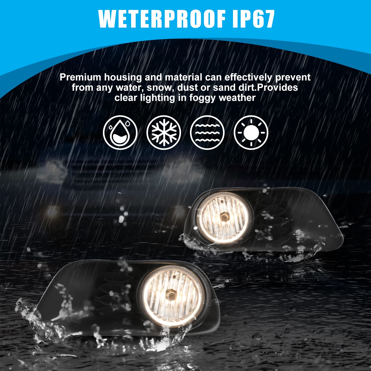 - ENHANCE VISIBILITY: Fog lights increase safety during night time, heavy rain, snow, or dense fog. The clear lens ensures maximum illumination, and the fog light assembly with the high seal has a good waterproof dust-proof function, it can provide great visibility in fog weather.