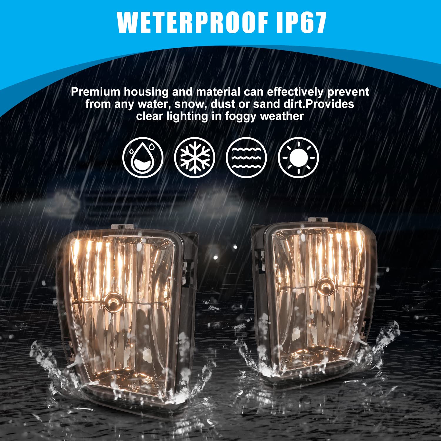 - ENHANCE VISIBILITY: Fog lights increase safety during night time, heavy rain, snow, or dense fog. The clear lens ensures maximum illumination, and the fog light assembly with the high seal has a good waterproof dust-proof function, it can provide great visibility in fog weather.