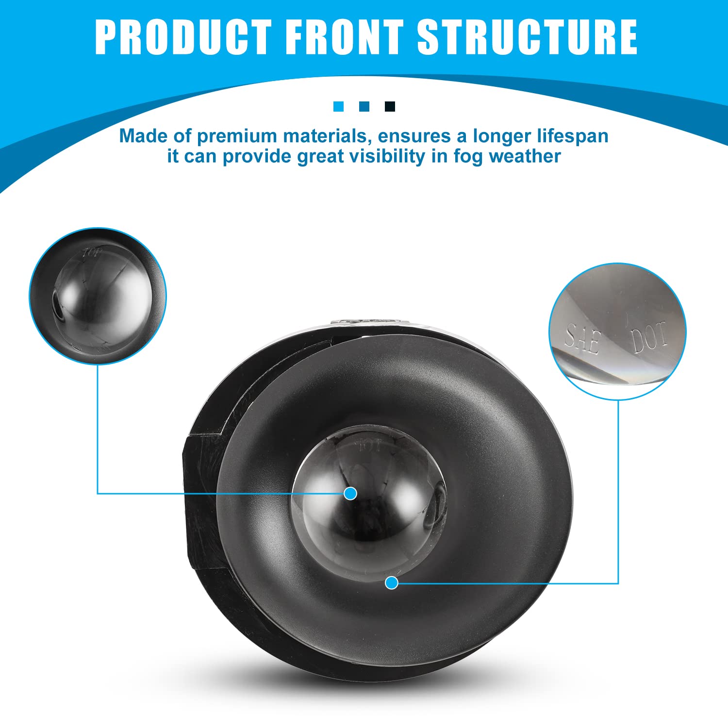 - GOOD PERFORMANCE: Fog lights increase safety during night time, heavy rain, snow, or dense fog. The clear lens ensures maximum illumination, and the fog light assembly with the high seal has a good waterproof dust-proof function, it can provide great visibility in fog weather.
