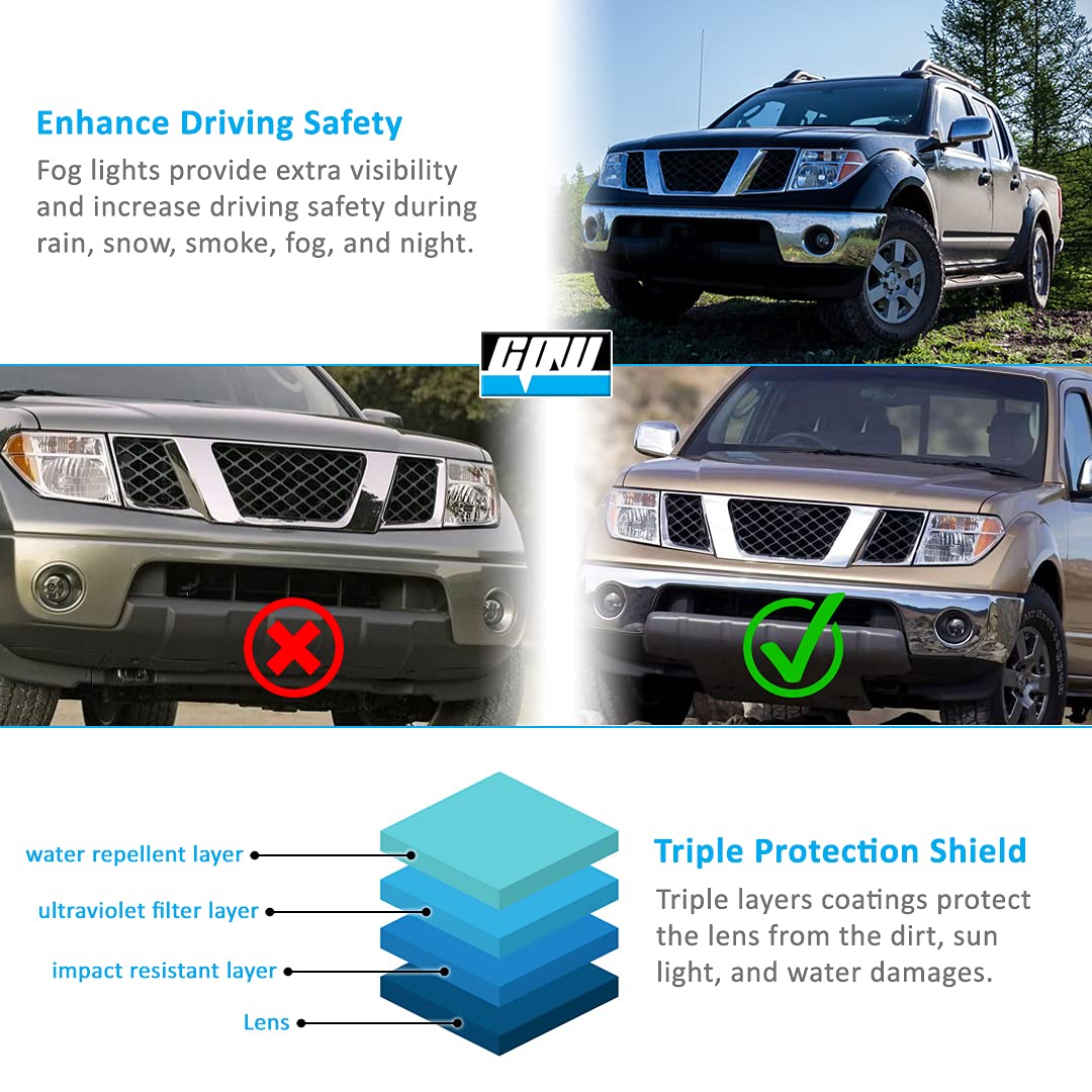 - 🚘VEHICLE FITMENT: The fog lights assembly are compatible with 2005-2019 FRONTIER (Metal Bumper Only). Comes in a pair with the driver and passenger sides.(Note: please confirm the vehicle year and model before purchasing.)
