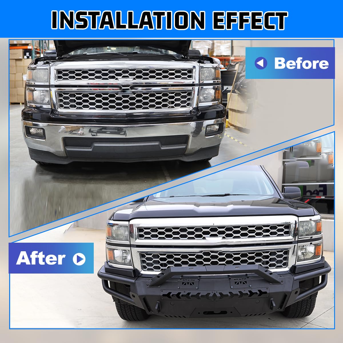 - â ăPerfect CompatibilityăAudacious, angular off-road design, this modular mid-width front bumper combination is compatible with 2014 2015 Chevy Silverado 1500. Please make sure your vehicle in our match list before purchased.