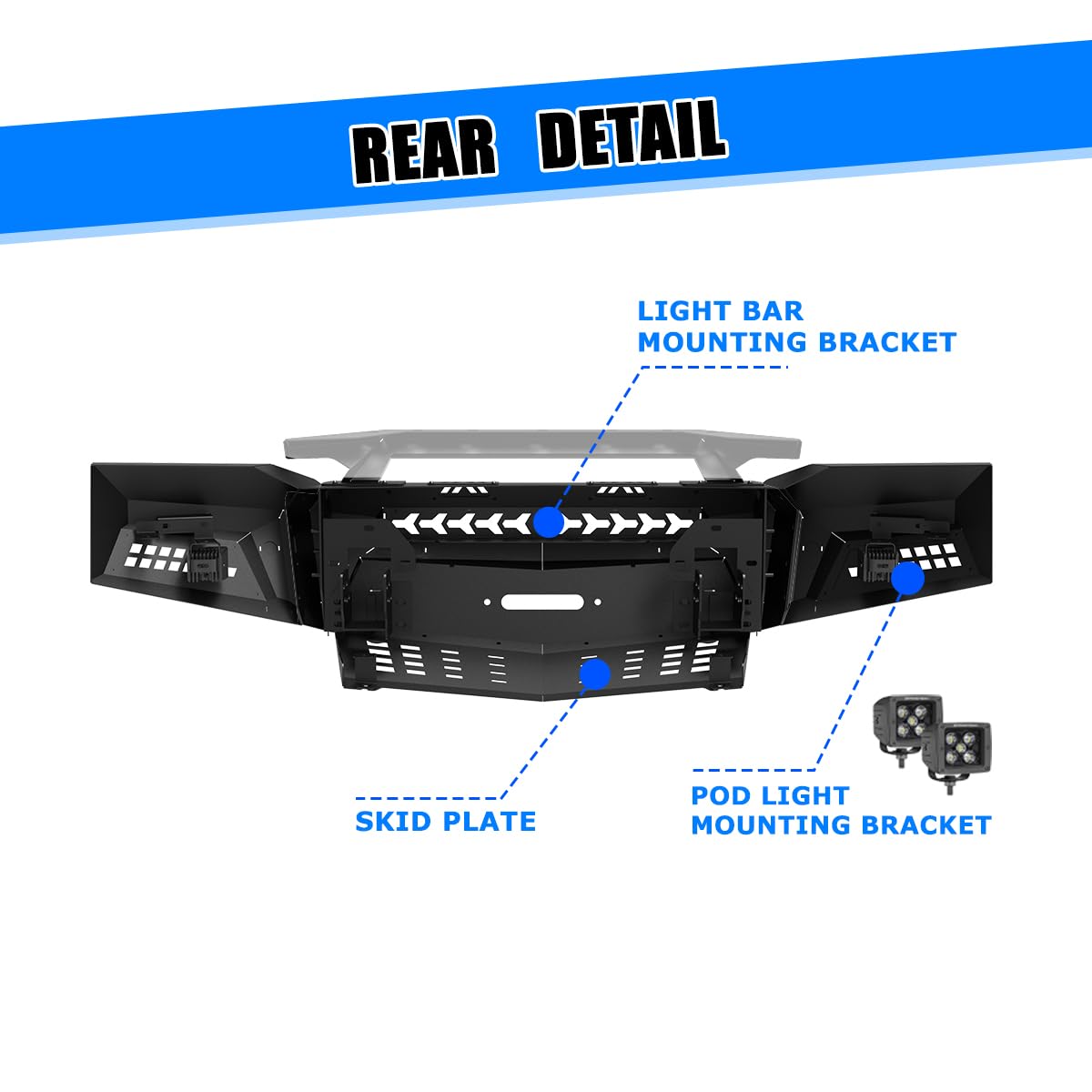 - â ăPerfect CompatibilityăAudacious, angular off-road design, this modular full-width front bumper is compatible with 2019 2020 2021 Chevy Silverado 1500 (Exclude 2019 LD Model). Package comes with 1 x front bumper main body, 2 x Side Wings, 2 x D-Ring Shackles and a set of installaion hardwares. Please make sure your vehicle in our match list before purchased.