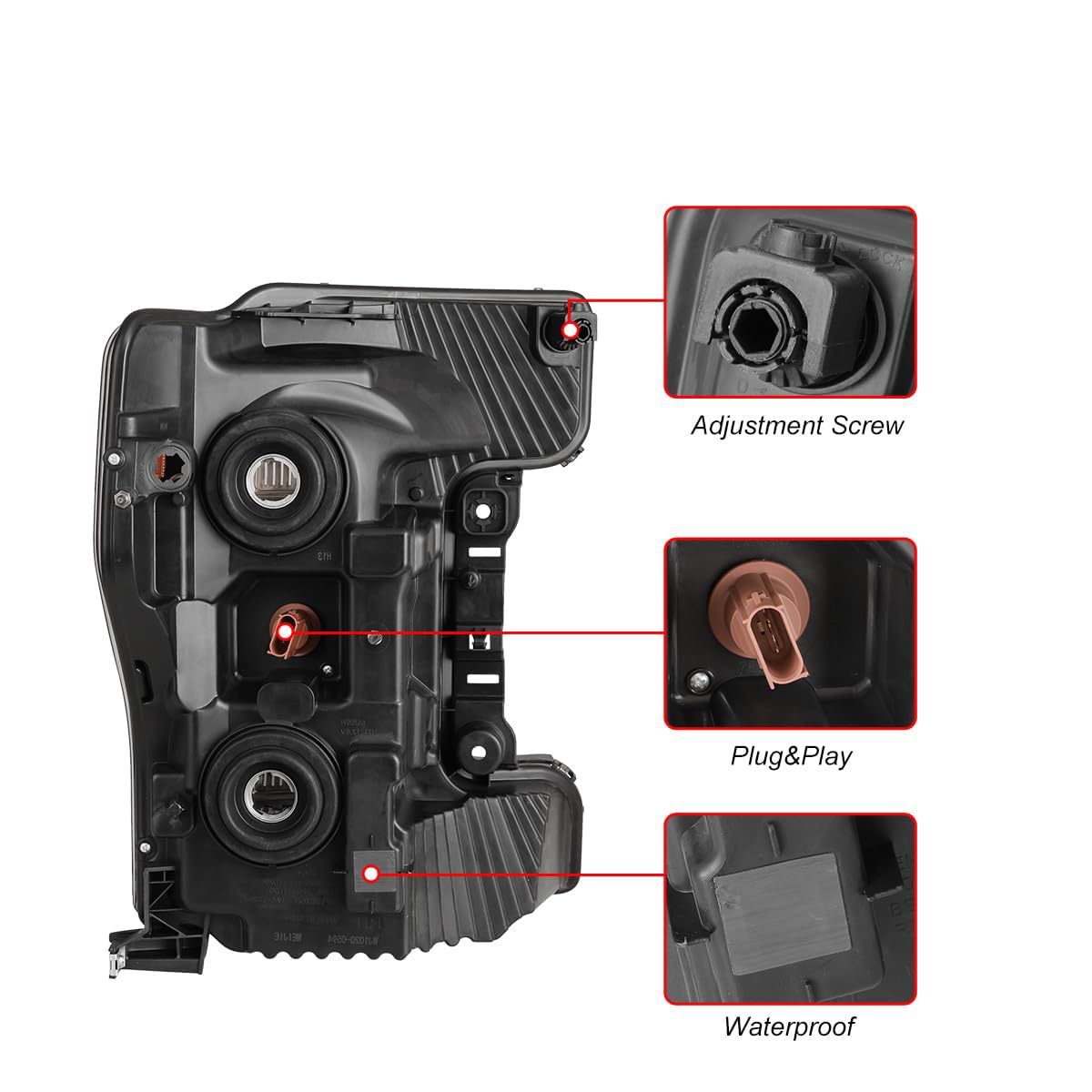 - ăQuality MaterialăThe Headlights made from superior OEM grade ABS plastic housing and full sealed beam, that can reach up to IP67 weatherproof to ensure pretty durability in heavy rain or terrible weather. Moreover, the well-designed breather has a good heat dissipation to make the lights breathable and extend the light's life.