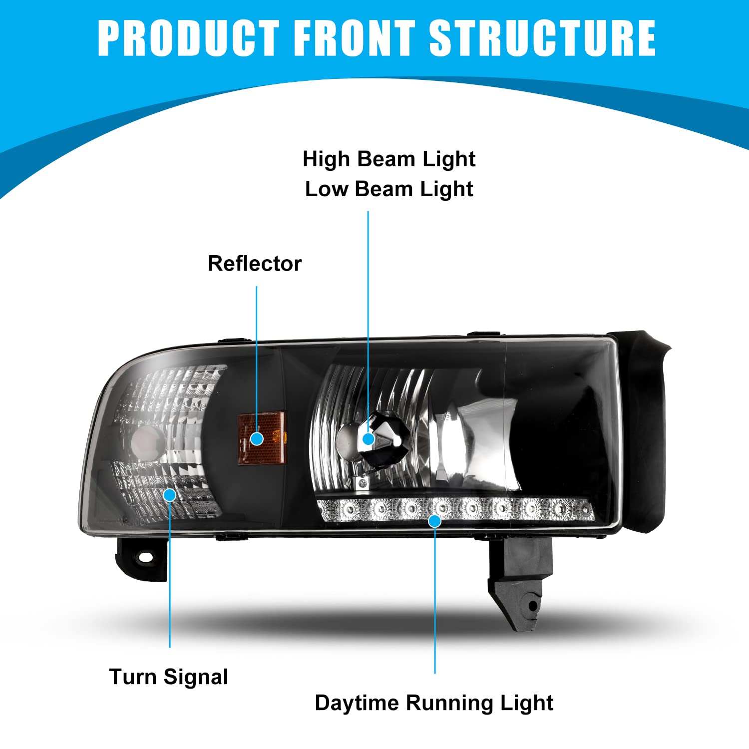 - VEHICLE COMPATIBILITY: The headlight is meet with OEM requirements and standard safety. Compatible with 1994-2001 Dodge Ram 1500, 1994-2002 Dodge Ram 2500 / 3500,1995-2002 Dodge Ram 4000.
