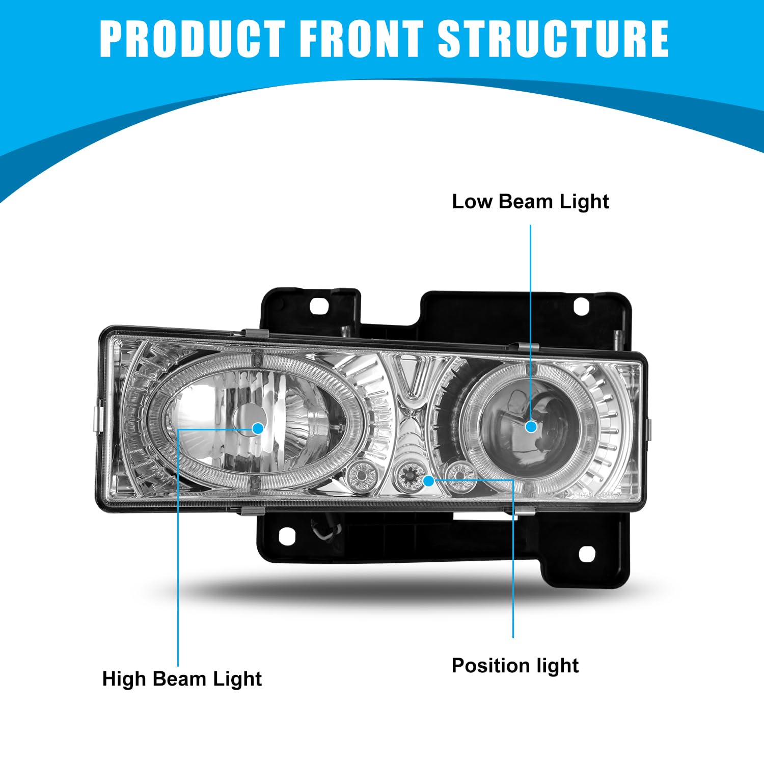 CPW Headlights Fit for Chevy C1500 C2500 C3500 K1500 K2500 K3500 1988-1999 Chevy Suburban 1500/2500 1992-1999 Chevy Blazer 1992-1994 and Chevy Tahoe 1995-2000 Chrome/Clear
