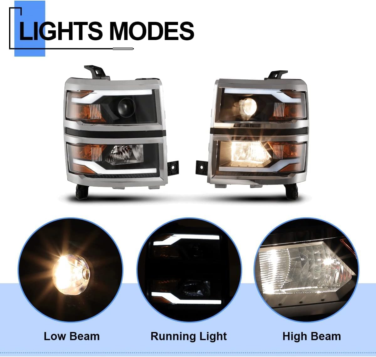 - ăAFTER-SALE SERVICEă: Please feel free to contact us via amazon message center if any quality issues. We offer a 30 days free return and 12 months warranty service if you do not satisfied with this chevrolet silverado headlights.