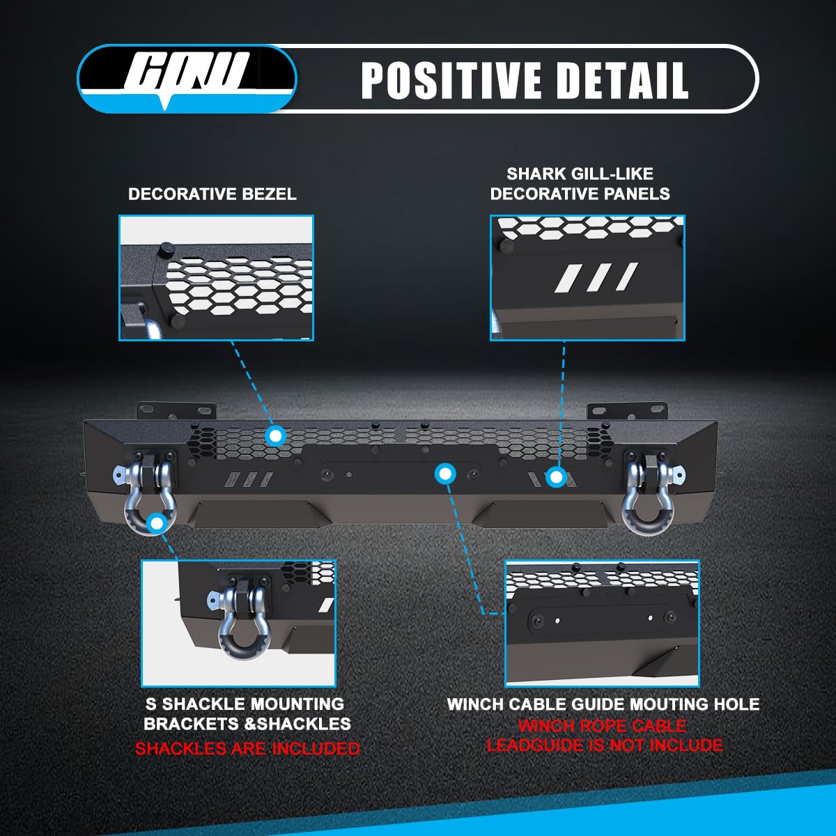 - â ăQuality CraftsmanshipăThe newly designed modular front bumper are made of heavy duty steel material, and the surface is black powder coated to ensure the product does not rust nor corrode, enhancing its looks and lifespan.