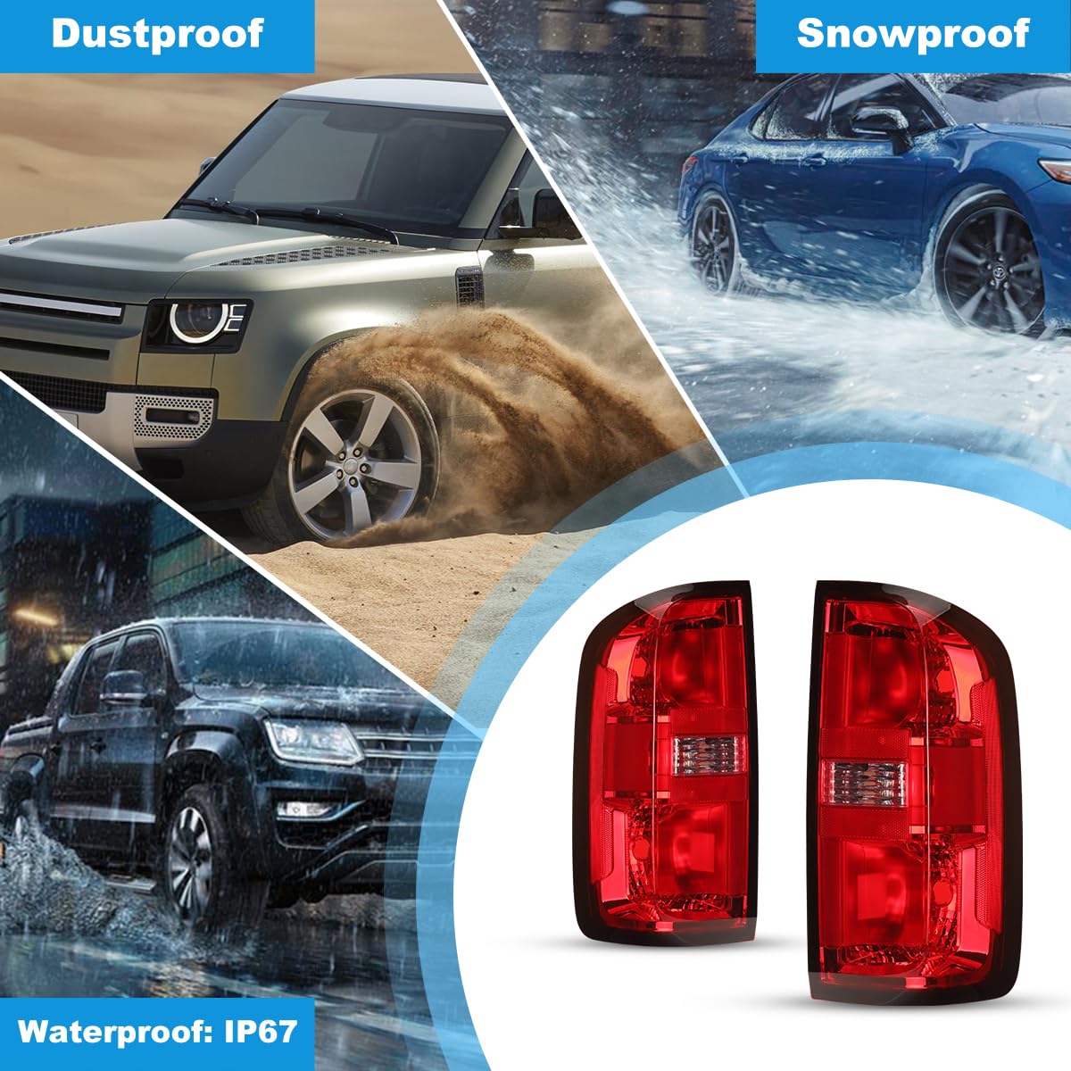 - ăPERFECT PERFORMANCEă- Well Sealed Construction, Thoroughly tested to deliver smooth operation and completely sealed to prevent moisture from being trapped inside the housing. Our tail lights made from superior OEM grade ABS plastic housin, that can reach up to IP67 weatherproof to ensure pretty durability in heavy rain or terrible weather.