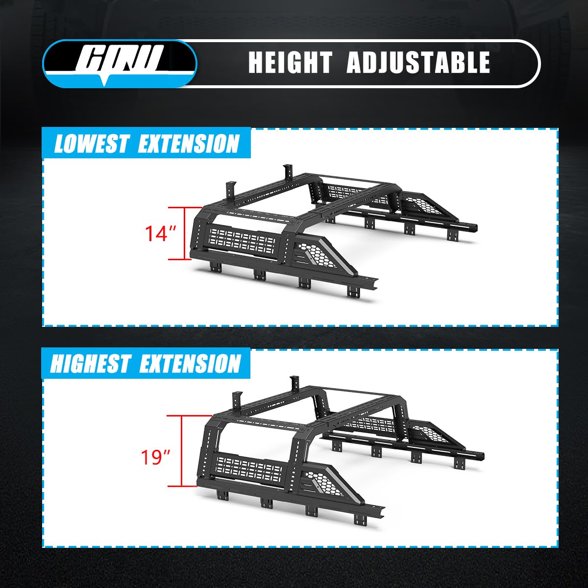 - â ăModular Design Functionă Split design Adjustable Overland Bed Rack which makes you flexibly install the Mid Roll Bar, Rear Roll Bar, Spare Tyre Carrier, Roof Rack, Molle Panel and Off-road tools mounting kit according to your needs. This unique modular design gives you enough freedom to flexibly customize your Roll Bar according to your own personal style. At the same time, it also facilitates future upgrades, repairs, or replacement of parts.